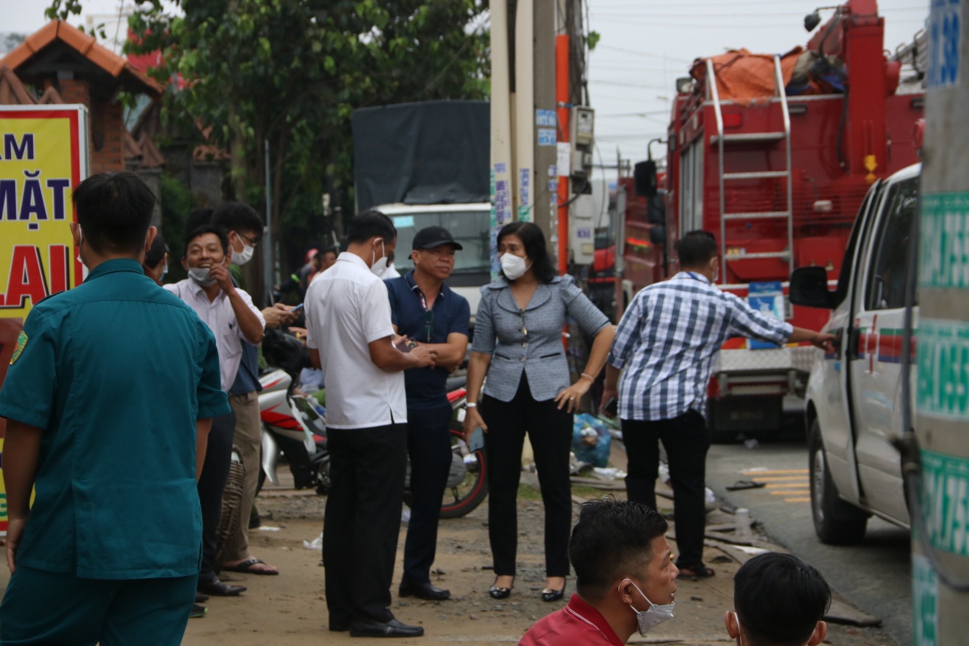 | Lãnh đạo thành phố Thuận An có mặt tại hiện trường phối hợp triển khai công tác cứu hộ và hỗ trợ nạn nhân |