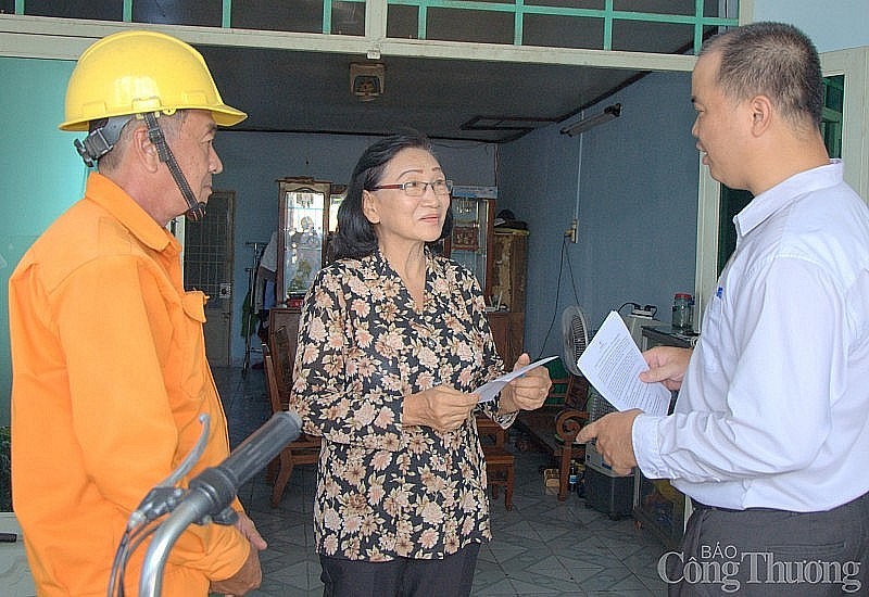 | Nhân viên ngành điện Bình Dương tuyên truyền, hướng dẫn người dân sử dựng điện tiết kiệm và hiệu quả |