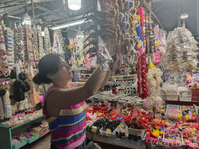 | Những ngày giáp Tết, các mặt hàng trang sức tại chợ Thủ Dầu Một được chuẩn bị ngày càng nhiều |