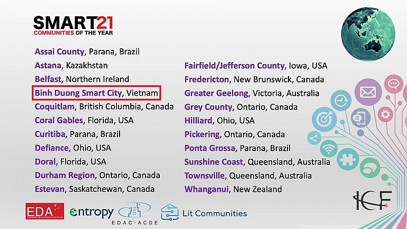 Lần thứ 5 liên tiếp Bình Dương được vinh doanh Top 21 Cộng đồng thông minh thế giới |