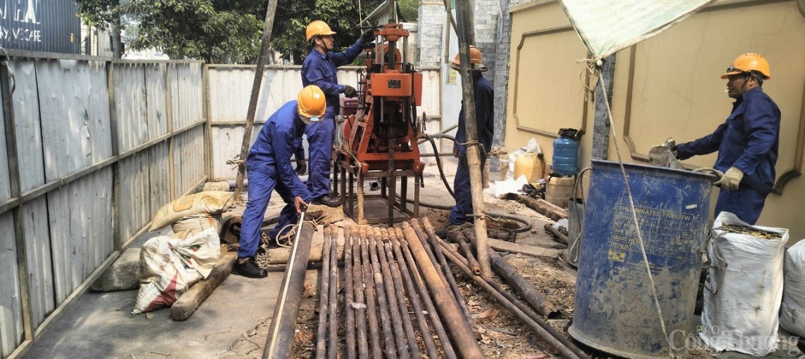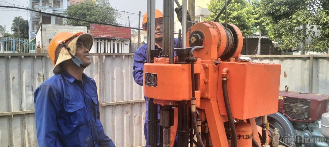 | Đoàn khảo sát địa chất tiến hành khoan địa chất tại vị trí HK5 - vị trí nằm trên Công viên trồng cỏ Đại lộ Bình Dương, lấy mẫu kiểm tra tính chịu lực của cọc, móng hạng mục phần hầm, phục vụ cho bản vẽ thiết kế thi công công trình |