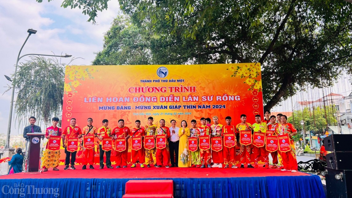 Nhân dịp chào mừng kỷ niệm 94 năm Ngày thành lập Đảng Cộng sản Việt Nam và mừng Tết cổ truyền của dân tộc, thành phố Thủ Dầu Một, tỉnh Bình Dương đã tổ chức Chương trình liên hoan nghệ thuật biểu diễn múa lân - sư - rồng.