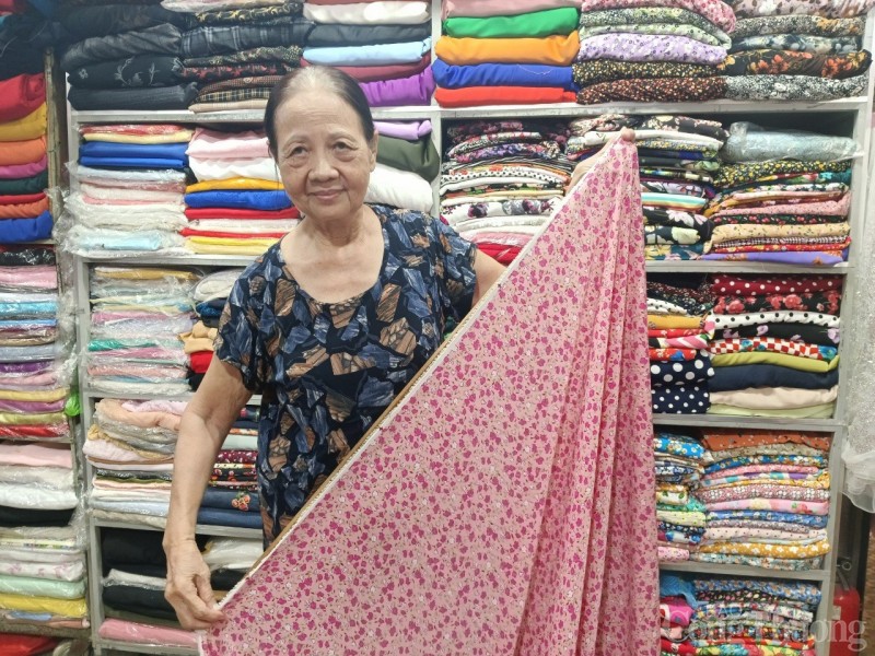 | Cụ Nguyễn Thị Hòa (70 tuổi), tiểu thương bán hàng vải sợi có thâm niên mấy chục năm buôn bán ở chợ Thủ Dầu Một |