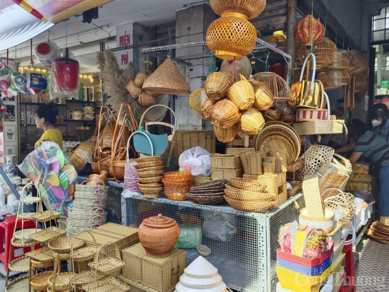 | Các sản phẩm mây tre đan từ các làng nghề đan lát ở Bình Dương đem về chợ bán, được người tiêu dùng nơi đây ưa chuộng |
