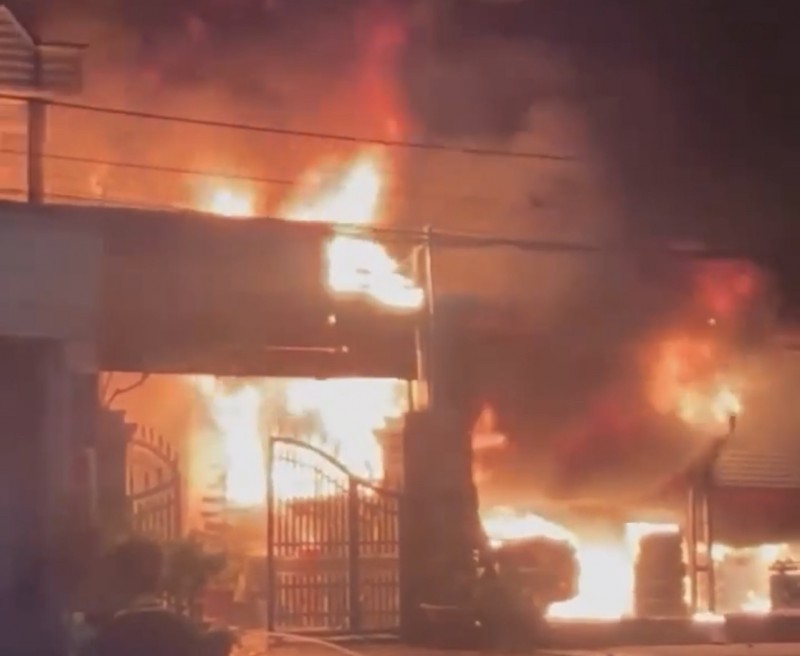 | Ngọn lửa bốc cháy ngùn ngụt tại khu dân cư Việt Sing (TP. Thuận An, tỉnh Bình Dương) |