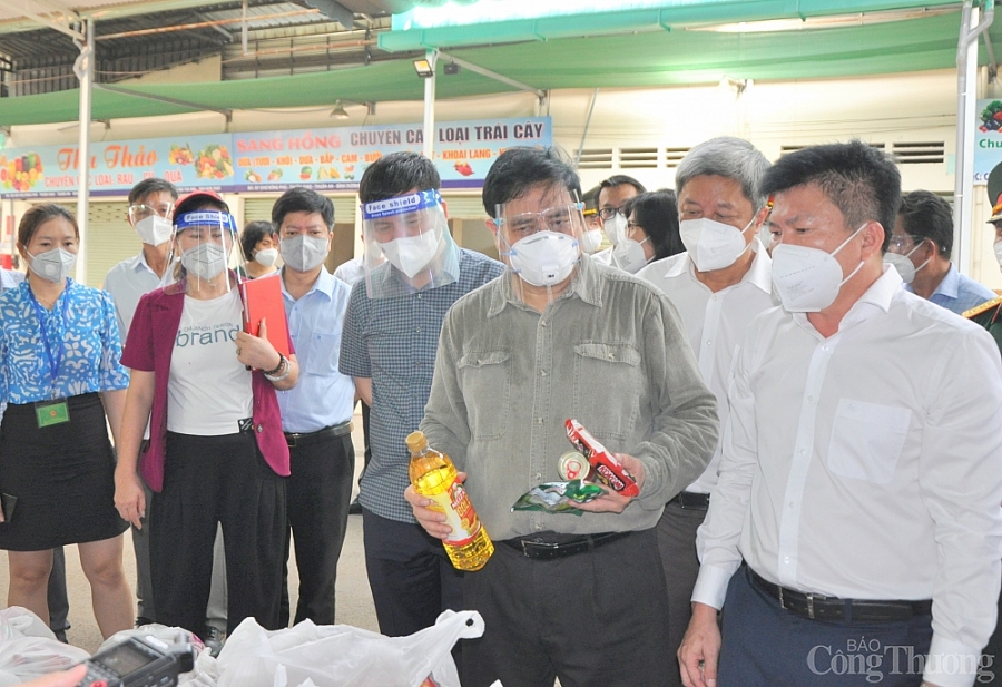 Thủ tướng Phạm Minh Chính cùng đoàn công tác của Chính phủ đến kiểm tra khu tập kết, chuẩn bị các gói thực phẩm hỗ trợ người dân tại chợ đầu mối nông sản thực phẩm Đông Phú, phường Thuận Giao, TP. Thận An |