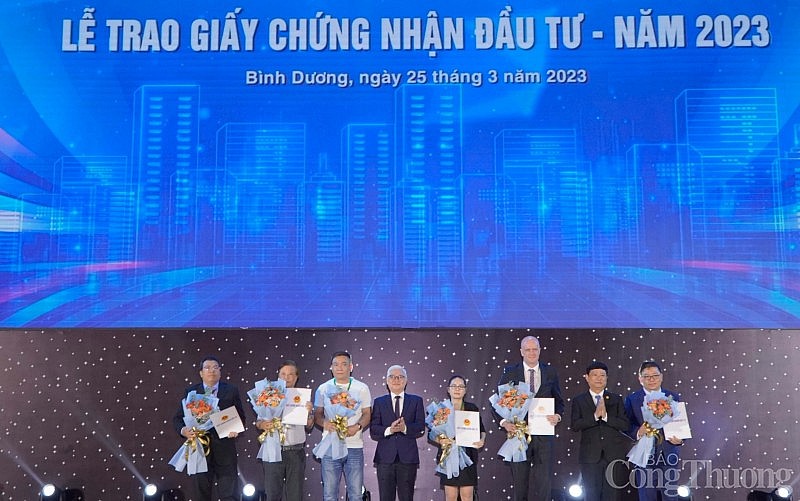 | Lãnh đạo tỉnh Bình Dương trao giấy phép đầu tư và giấy phép tăng vốn đầu tư cho 6 doanh nghiệp |