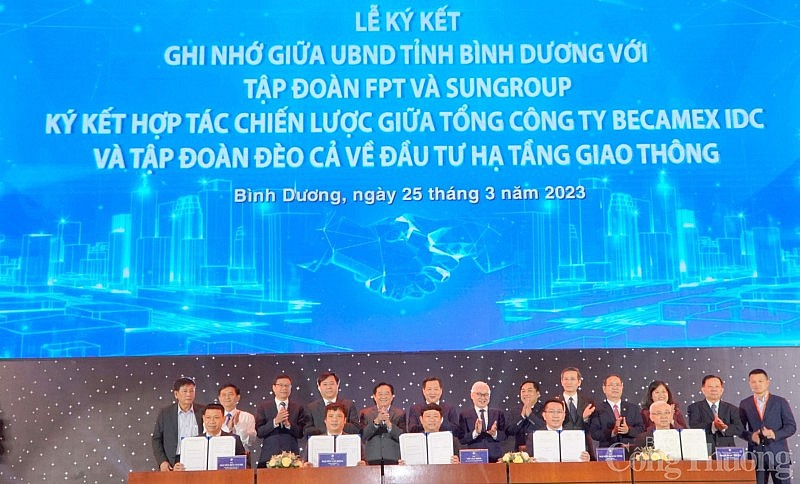 Dịp này, cũng diễn ra lễ ký kết biên bản ghi nhớ đầu tư giữa tỉnh Bình Dương với Tập đoàn FPT và Tập đoàn SunGroup; ký kết hợp tác chiến lược giữa Tổng công ty Becamex với Tập đoàn Đèo Cả về đầu tư hạ tầng giao thông.
