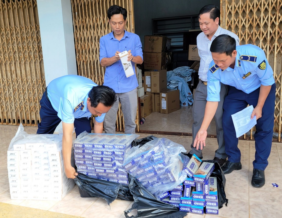 | Nhiều vụ buôn thuốc lá lậu bị bắt giữ và tịch thu hàng hoá (Cục QLTT tỉnh Bình Phước). |