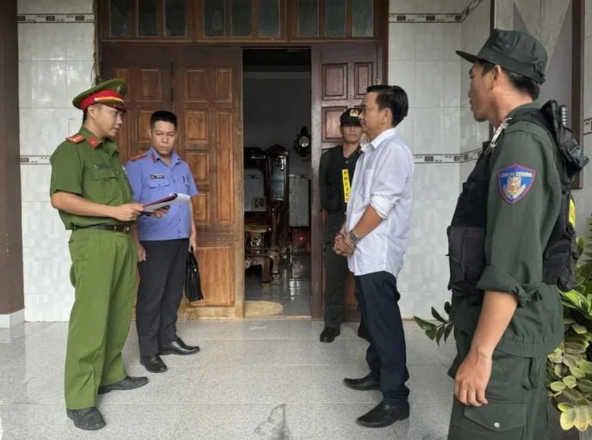 | Thi hành lệnh bắt bị can Trần Viết Quý - Ảnh: PLO. |