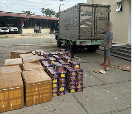 Qua kiểm tra, lực lượng chức năng phát hiện trên xe của V có chở theo 9 thùng xốp, bên trong chứa 284 hộp pháo nổ (loại giàn 49 ống/hộp) có xuất xứ nước ngoài, với tổng trọng lượng khoảng 426kg.