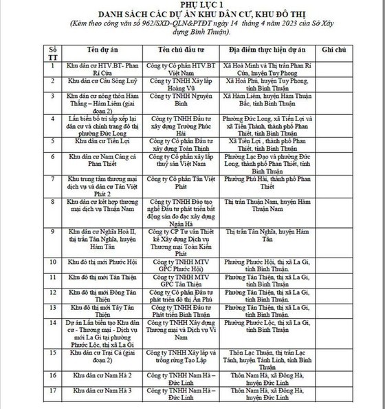 | Bình Thuận đã công bố 17 dự án khu dân cư, nhà ở chưa được phép rao bán |