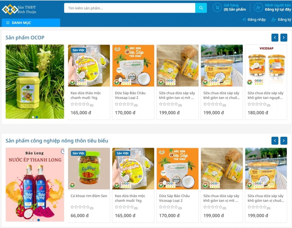 | Giao diện sàn thương mại điện tử tỉnh Bình Thuận - (Ảnh chụp màn hình) |
