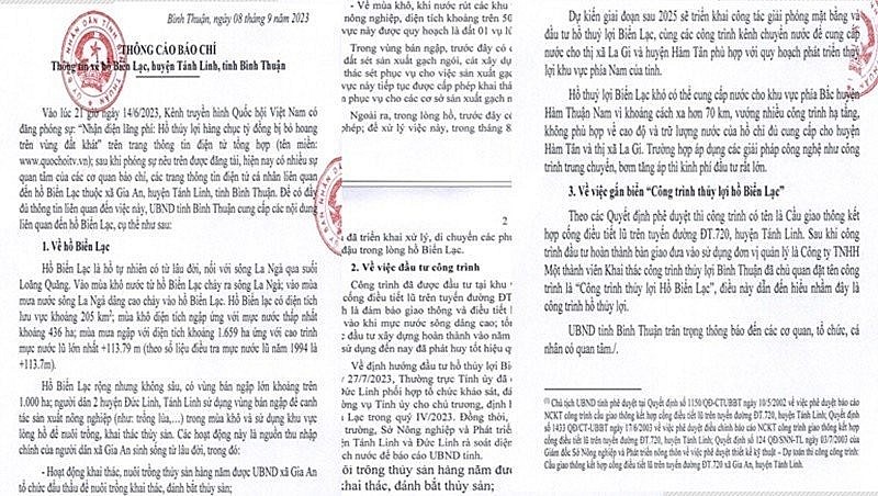 Trước đó ngày 14/6/2023, Kênh truyền hình Quốc hội Việt Nam có đăng phóng sự: “Nhận diện lãng phí: Hồ thủy lợi hàng chục tỷ đồng bị bỏ hoang trên vùng đất khát” trên trang thông tin điện tử tổng hợp (tên miền: www.quochoitv.vn). Sau khi phóng sự nêu trên được đăng tải, hiện nay có nhiều sự quan tâm của các cơ quan báo chí, các trang thông tin điện tử cá nhân liên quan đến hồ Biển Lạc.