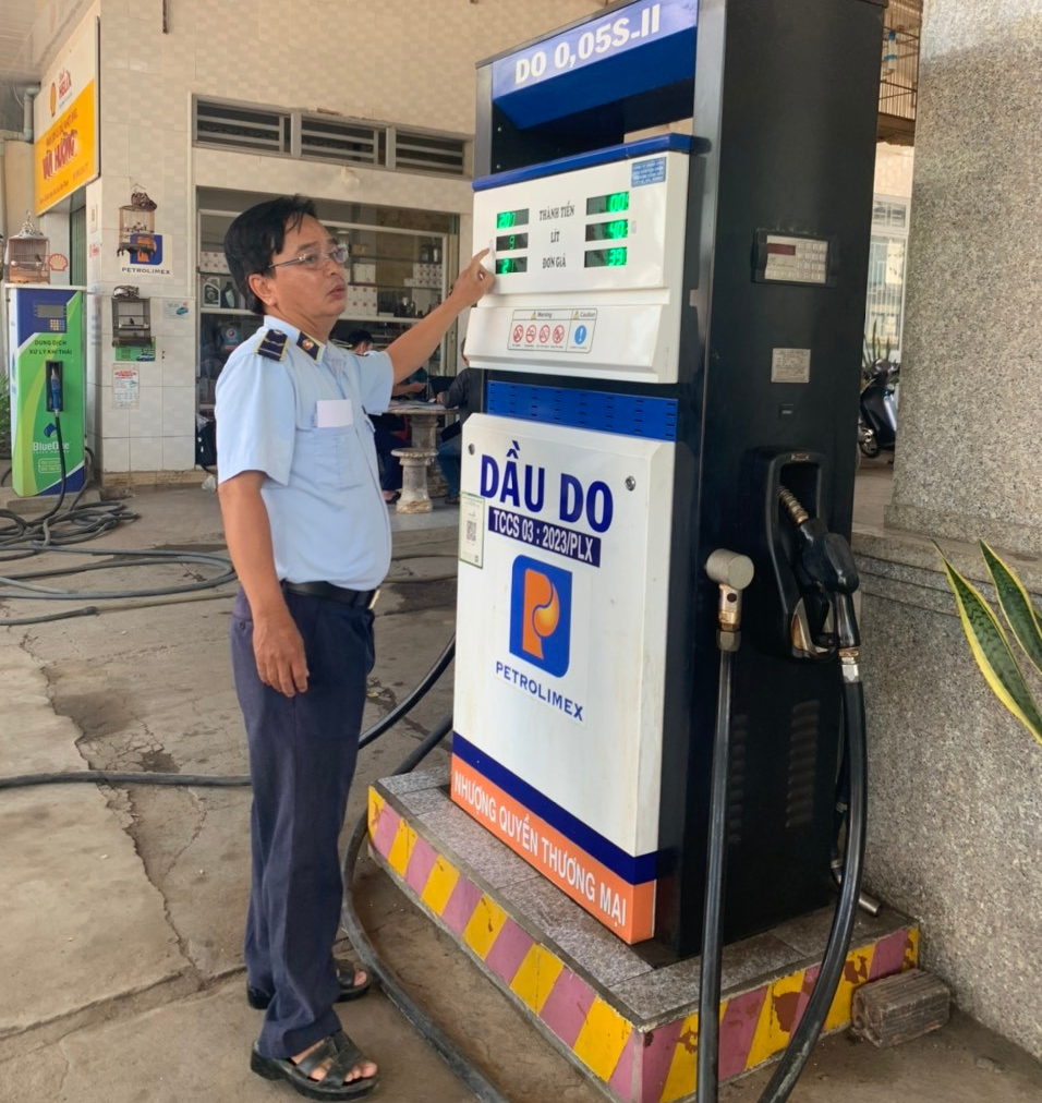 | Cán bộ Cục Quản lý thị trường tỉnh Bình Thuận kiểm tra một cửa hàng kinh doanh xăng dầu trên địa bàn tỉnh - (Ảnh: Cục QLTT Bình Thuận). |