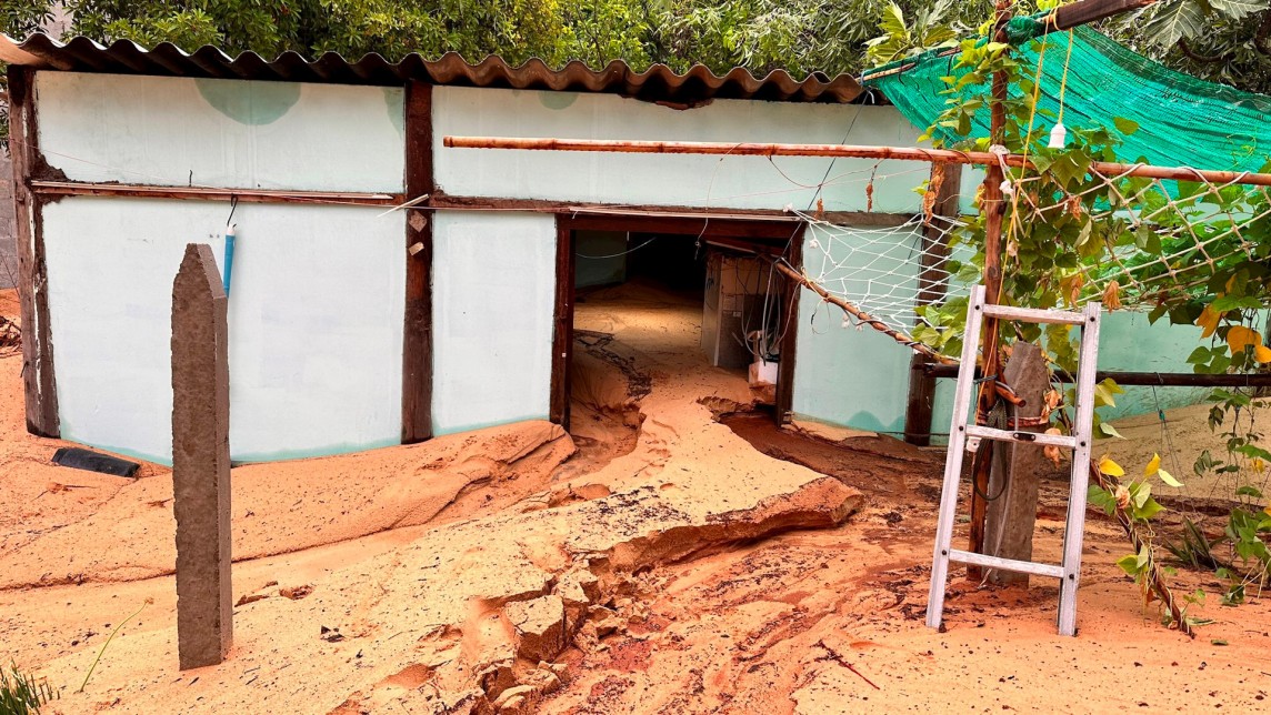 | Lũ cát chảy xuyên qua nhà dân - Ảnh: Lê Phúc |