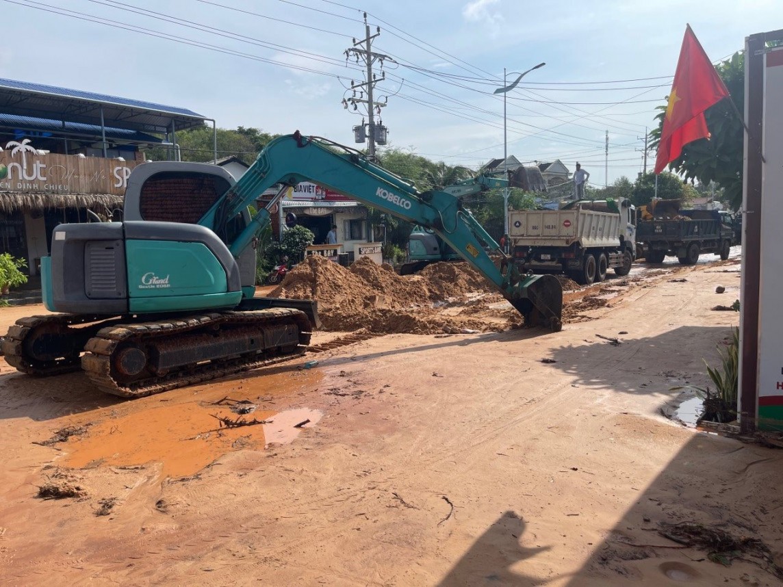 Ngay khi sự việc xảy ra, lãnh đạo TP. Phan Thiết đã có mặt chỉ đạo khắc phục sự cố, yêu cầu các đơn vị huy động tối đa lực lượng cùng máy móc, thiết bị, khẩn trương dọn dẹp lượng bùn cát tràn ra đường để sớm trả lại bề mặt đường cho xe cộ lưu thông.