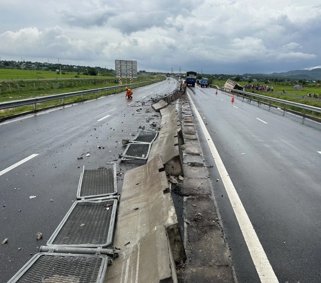 Vụ tai nạn còn làm đổ 15 dải phân cách giữa, hư hỏng 30 tấm chống chói, tấm hộ lan dây kẽm gai, rãnh mương thoát nước...