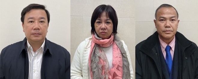 | Ông Vũ Hồng Nam (ngoài cùng bên phải) thời điểm bị khởi tố - Ảnh Bộ Công an |