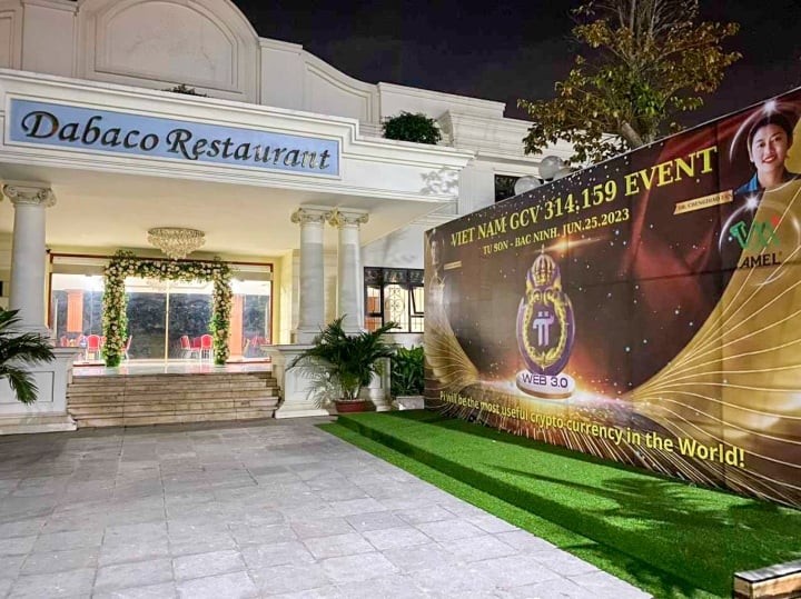 | Băng rôn buổi offline phía bên ngoài nhà hàng Dabaco Từ Sơn - Ảnh VTC |