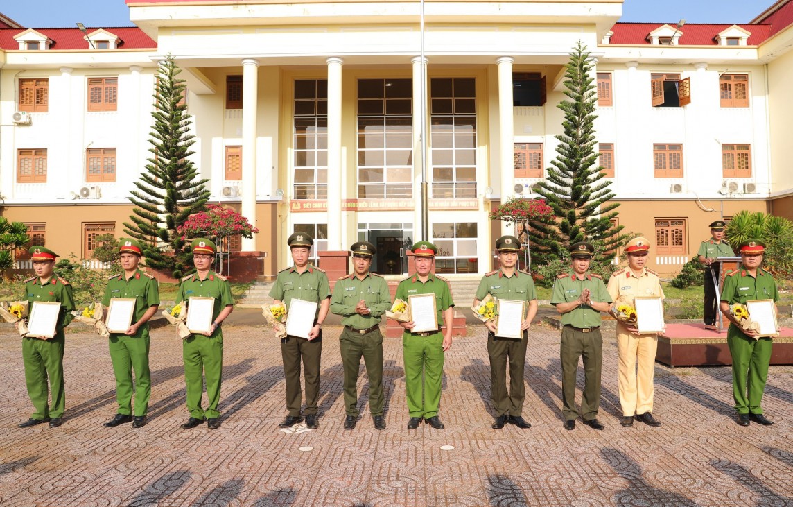 Thừa ủy quyền của cấp trên, Đại tá Nay Gia Phú, Phó Giám đốc Công an tỉnh và Đại tá Hồ Quang Thắng, Phó Giám đốc Công an tỉnh đã tặng hoa chúc mừng và trao quyết định khen thưởng của Bộ trưởng Bộ Công an với số tiền từ 10 đến 20 triệu đồng cho các phòng nghiệp vụ, Công an các huyện, Công an cấp xã thuộc Công an tỉnh Đắk Nông vì đã có thành tích xuất sắc trong công tác đấu tranh, phòng, chống các loại tội phạm.
