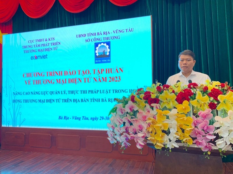 Trong các ngày từ 29-31/8/2023, Trung tâm Phát triển Thương mại điện tử, Cục Thương mại Điện tử và Kinh tế số (Bộ Công Thương) đã phối hợp với Sở Công Thương các tỉnh Bà Rịa – Vũng Tàu tổ chức Hội nghị nhằm nâng cao năng lực quản lý, thực thi pháp luật trong hoạt động thương mại điện tử, Kỹ năng ứng dụng công nghệ thông tin và chuyển đổi số cho cán bộ quản lý và doanh nghiệp trong lĩnh vực thương mại trên địa bàn tỉnh.