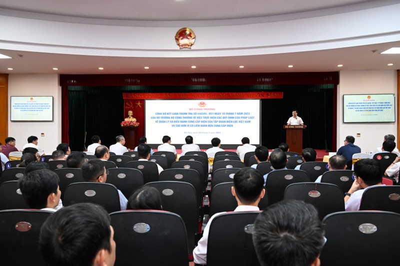 Trong gần một tháng làm việc khẩn trương, nghiêm túc theo đúng trình tự, thủ tục pháp luật về thanh tra, Đoàn Thanh tra đã hoàn thành các nội dung theo đề cương và đã có báo cáo Bộ trưởng Bộ Công Thương kết quả thanh tra (Báo cáo số 19/BC-ĐTT ngày 07 tháng 7 năm 2023). Căn cứ Báo cáo của Đoàn Thanh tra, Báo cáo kết quả thẩm định, ngày 10 tháng 7 năm 2023, Bộ trưởng Bộ Công Thương đã ban hành Kết luận số 4463/KL-BCT về quản lý và điều hành cung cấp điện của EVN và các đơn vị có liên quan đến cung cấp điện. Kết luận Thanh tra đã được Bộ Công Thương tổ chức công bố công khai toàn văn sáng ngày 12/7/2023 tại Bộ theo quy định.
