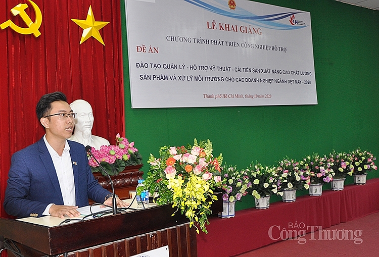 Tại lễ khai giảng, ông Lê Văn Khôi, đại diện Văn phòng Cục Công nghiệp (Bộ Công Thương) tại TP. Hồ Chí Minh, đã công bố Quyết định thông qua Chương trình Phát triển Công nghiệp Hỗ trợ 2020; quyết định đề án “Đào tạo quản lý, hỗ trợ kỹ thuật, cải tiến sản xuất nâng cao chất lượng sản phẩm và xử lý môi trường cho các doanh nghiệp ngành dệt may”.