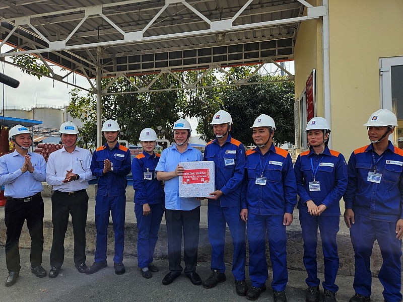 | Thứ trưởng Nguyễn Sinh Nhật Tân chúc Tết cán bộ nhân viên Tổng kho Xăng dầu Nhà Bè |