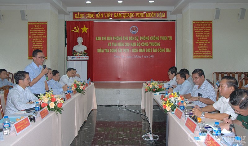 Ngày 15/9, ông Tô Xuân Bảo - Phó trưởng Ban chỉ huy phòng chống thiên tai và tìm kiếm cứu nạn, Cục trưởng Cục An toàn môi trường (Bộ Công Thương) dẫn đầu đoàn công tác Bộ Công Thương làm việc, kiểm tra công tác phòng chống thiên tai tại tỉnh Đồng Nai năm 2023.