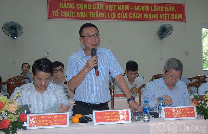| Ông Tô Xuân Bảo - Phó trưởng Ban Chỉ huy phòng chống thiên tai và tìm kiếm cứu nạn, Cục trưởng Cục An toàn môi trường (Bộ Công Thương), phát biểu tại buổi làm việc |