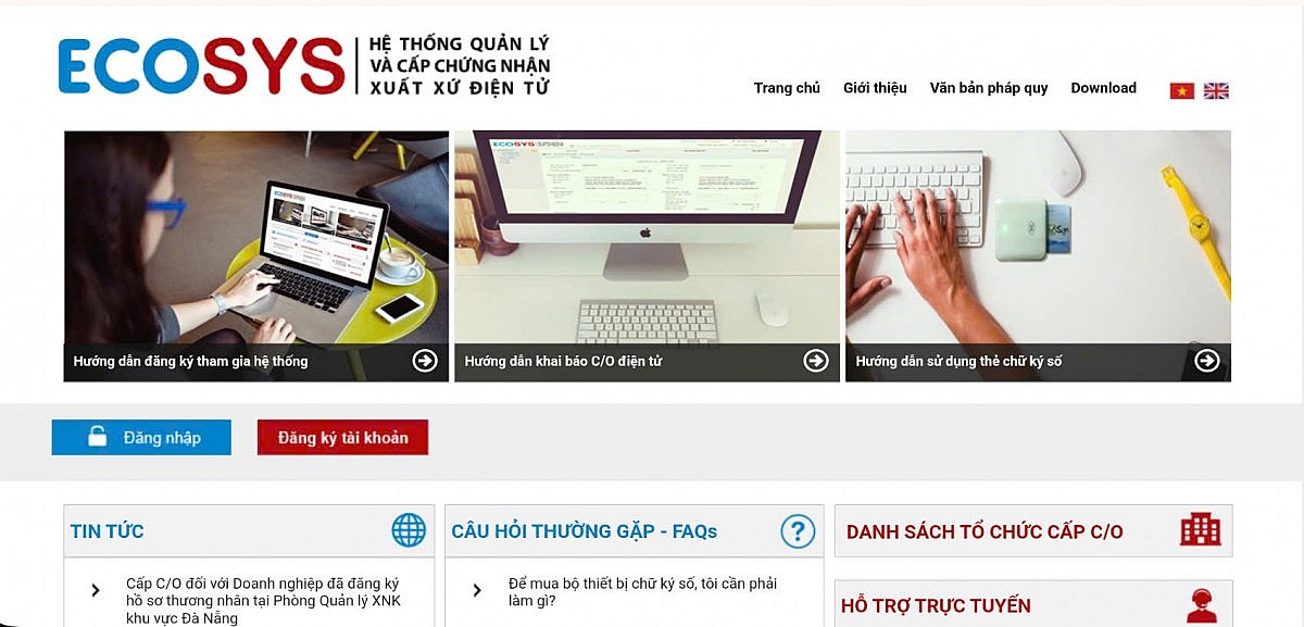 | Việc đăng ký mã số REX được thực hiện theo hình thức trực tuyến trên Hệ thống quản lý và cấp chứng nhận xuất xứ điện tử của Bộ Công Thương tại địa chỉ www.ecosys.gov.vn (Hệ thống eCoSys) - Ảnh chụp màn hình |