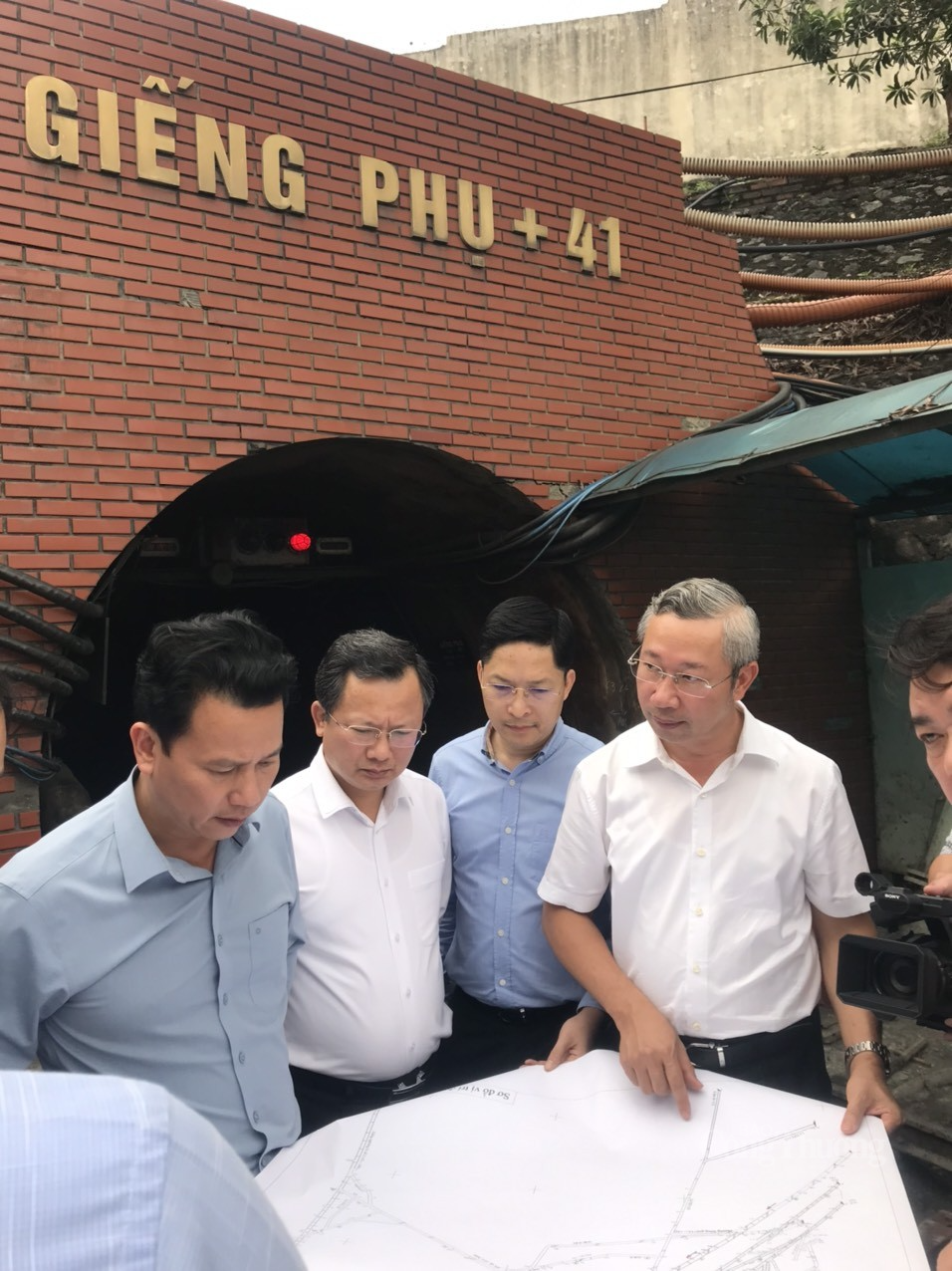 | Bộ trưởng Bộ Tài Nguyên và Môi trường Đặng Quốc Khánh, Chủ tịch UBND tỉnh Quảng Ninh Cao Tường Huy và Cục trưởng Cục Kỹ thuật an toàn và Môi trường công nghiệp Phạm Nguyên Hùng đang chỉ đạo các biện pháp cấp bách để đưa khu mỏ về trạng thái an toàn, đáp ứng yêu cầu của sản xuất than. |