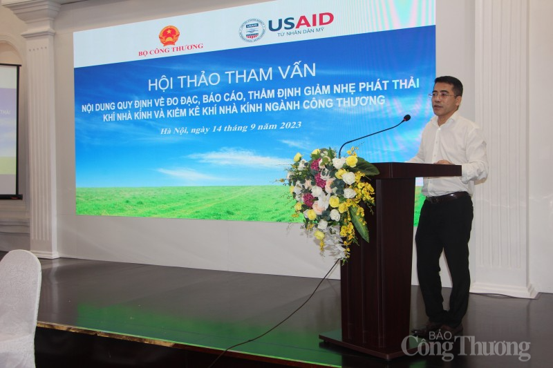 Tại hội thảo, ông Hoàng Văn Tâm - Phó Chánh văn phòng Biến đổi khí hậu và Tăng trưởng xanh (Bộ Công Thương) đã giới thiệu về Tổng quan và Quy trình kiểm kê khí nhà kính ngành Công Thương (cho cấp lĩnh vực và cấp cơ sở); Quy trình Đo đạc, Báo cáo, thẩm định (MRV) của các hành động giảm nhẹ phát thải khí nhà kính cho cấp lĩnh vực và cấp cơ sở.