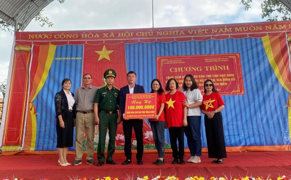Chia sẻ với những khó khăn đó, Đại tá Nguyễn Quang Quyết đã kết nối các nhà hảo tâm ủng hộ thầy, trò Trường tiểu học xã Xín Mần số tiền 108 triệu đồng. Cũng trong chương trình, đoàn công tác đã tặng 30 suất quà, mỗi suất quà trị giá 1 triệu đồng cho các hộ nghèo ở xã Xín Mần bị thiệt hại do bão số 3 gây ra.