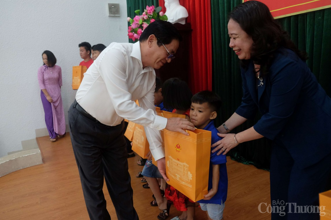 | Phó Chủ tịch nước Võ Thị Ánh Xuân, Bí thư Tỉnh ủy Bà Rịa - Vũng Tàu Phạm Viết Thanh trao quà cho các em nhỏ tại Trung tâm Công tác xã hội và Bảo trợ trẻ em tỉnh Bà Rịa – Vũng Tàu - (Ảnh: Nguyễn Ngọc) |