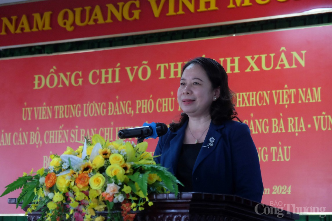 Phát biểu chỉ đạo tại buổi làm việc, Phó Chủ tịch nước Võ Thị Ánh Xuân chúc mừng, biểu dương các cán bộ, chiến sĩ Ban Chỉ huy Biên phòng cửa khẩu cảng tỉnh Bà Rịa – Vũng Tàu về kết quả của lực lượng đã đạt được trong thời gian qua.