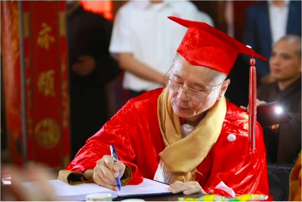 | Ông Thích Chân Quang trong ngày nhận bằng tại trường Đại học Luật Hà Nội. Nguồn ảnh: Giáo hội Phật giáo Việt Nam |