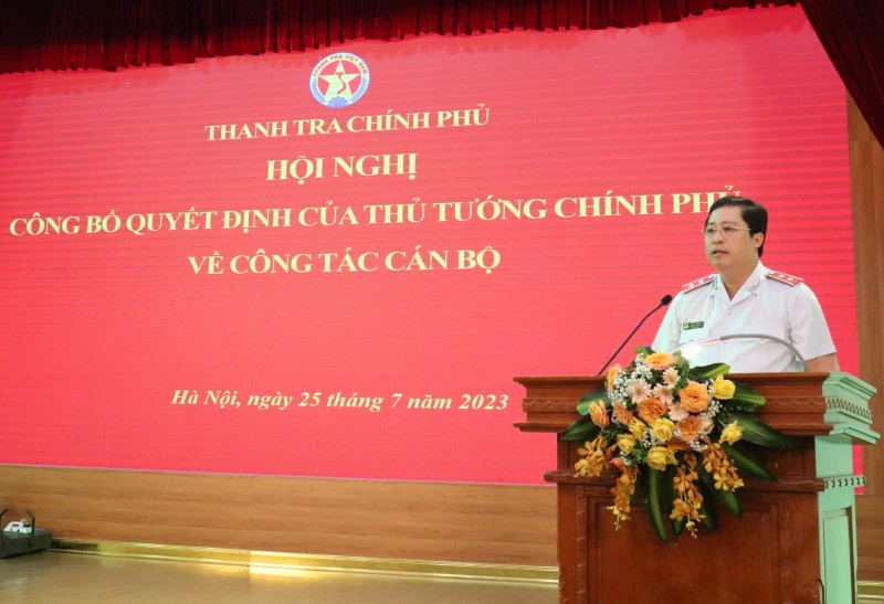 | Phó Tổng Thanh tra Chính phủ Dương Quốc Huy phát biểu nhận nhiệm vụ |