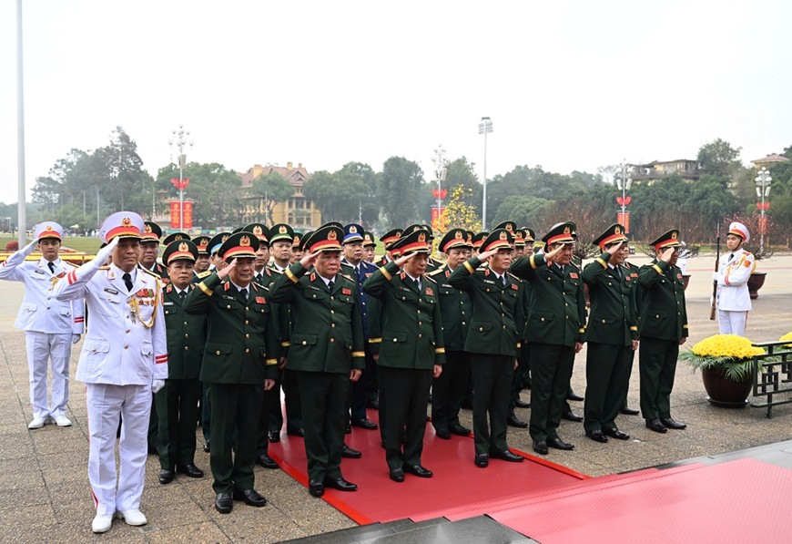 | Đoàn đại biểu Quân ủy Trung ương, Bộ Quốc phòng dâng hoa, vào Lăng viếng Chủ tịch Hồ Chí Minh. - Ảnh: QĐND |