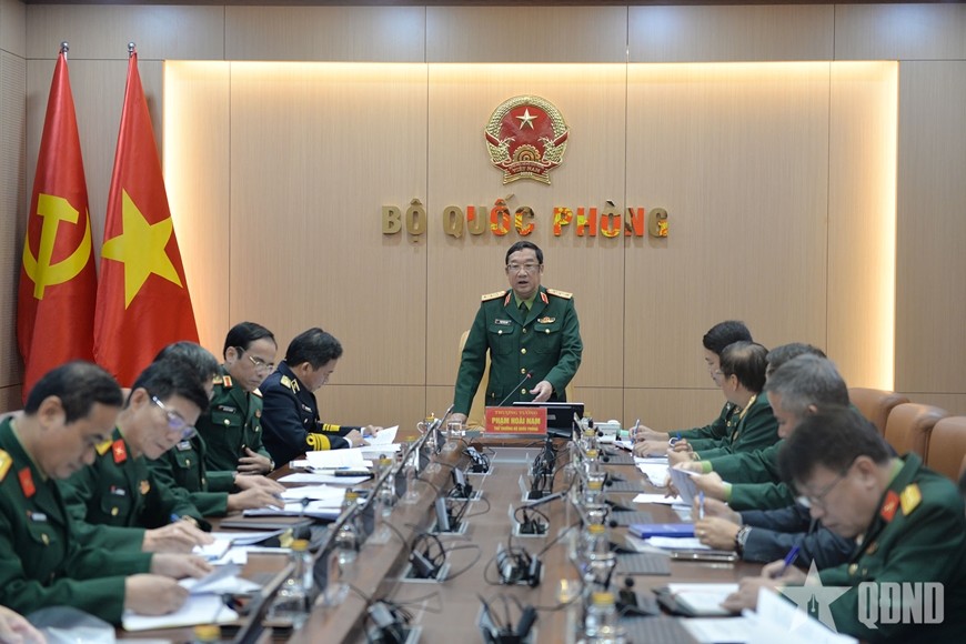 | Thượng tướng Phạm Hoài Nam, Ủy viên Trung ương Đảng, Thứ trưởng Bộ Quốc phòng chủ trì hội nghị. Ảnh: QĐND |