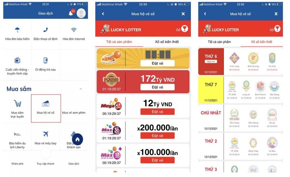 Trong hai năm gần đây, người dùng thấy xuất hiện một số ứng dụng cung cấp dịch vụ đặt mua vé số như Mobilott (thanh toán qua ví điện tử ViettelPay, VNPT Pay); Lucky Lotter (thanh toán qua Ví Việt hoặc Sendo); LuckyBest (thanh toán qua ví Momo, Gpay). Một số ngân hàng như MBBank, Sacombank cũng có dịch vụ đặt mua các sản phẩm của xổ số Vietlott như Keno, Power, Mega 6/45, Max 3D, Max 3D…