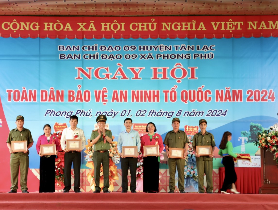 Nhân kỷ niệm 79 năm Ngày truyền thống lực lượng Công an nhân dân (19/8/1945-19/8/2024) và 19 năm Ngày hội toàn dân bảo vệ an ninh Tổ quốc (19/8/2005-19/8/2024), ngày 2/8, Ban Chỉ đạo 09 tỉnh Hòa Bình phối hợp với Ban Chỉ đạo 09 huyện Tân Lạc tổ chức Ngày hội Toàn dân bảo vệ an ninh Tổ quốc năm 2024. Huyện Tân Lạc là đơn vị đăng ký tổ chức điểm Ngày hội Toàn dân bảo vệ an ninh Tổ quốc của tỉnh Hòa Bình năm 2024. Trong đó, xã Phong Phú với trên 92% dân số là người dân tộc Mường đã được chọn làm điểm tổ chức ngày hội. Đây là cái nôi văn hóa của vùng Mường Bi - một trong 4 vùng Mường nổi tiếng của tỉnh Hòa Bình. |