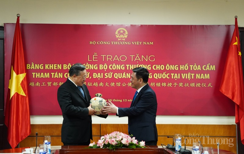 | Bộ trưởng Bộ Công Thương trao tặng Bằng khen cho ông Hồ Tỏa Cẩm – Tham tán công sứ Đại sứ quán nước Cộng hòa nhân dân Trung Hoa tại Việt Nam |