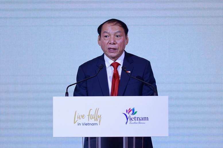 | Bộ trưởng Bộ Văn hóa, Thể thao và Du lịch Nguyễn Văn Hùng phát biểu tại Diễn đàn - Ảnh: VGP/Nhật Bắc |