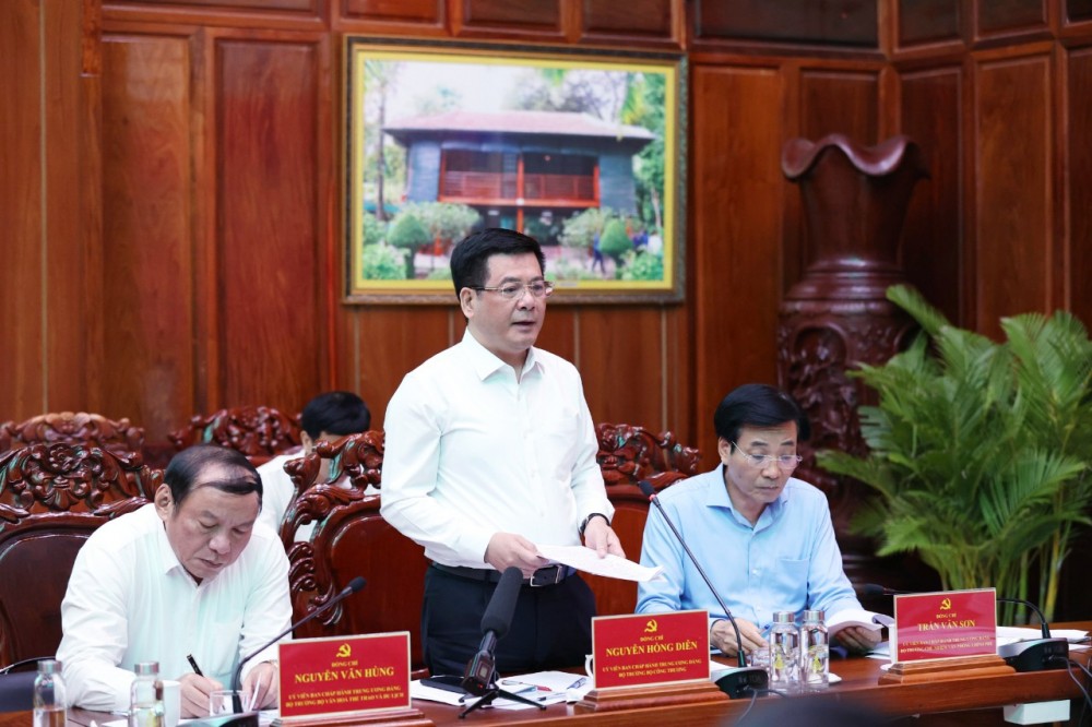 | Bộ trưởng Nguyễn Hồng Diên phát biểu tại buổi làm việc với Tỉnh ủy Hậu Giang |