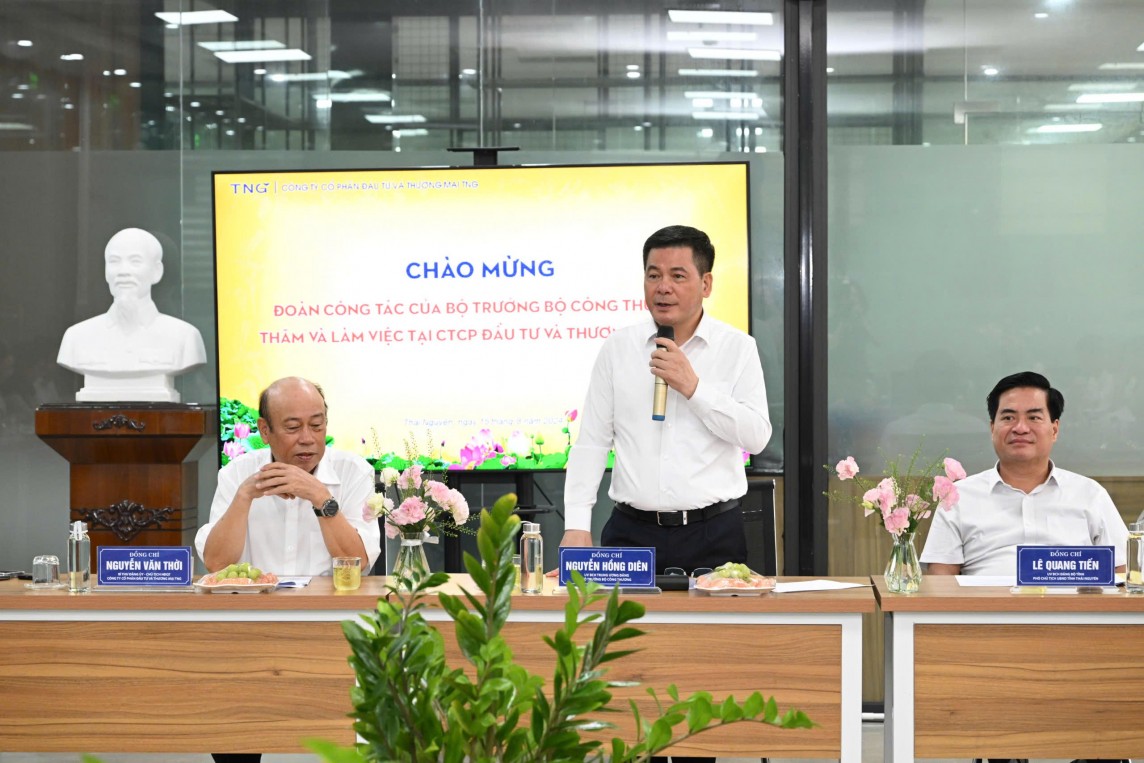 | Đoàn công tác Bộ Công Thương do Bộ trưởng Nguyễn Hồng Diên dẫn đầu đã đến thăm, thị sát hoạt động sản xuất của Công ty TNG Thái Nguyên. |