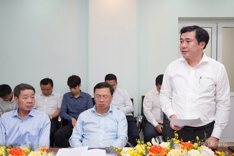 | Viện trưởng Viện Nghiên cứu Cơ khí Phan Đăng Phong báo cáo với Bộ trưởng và đoàn công tác Bộ Công Thương |