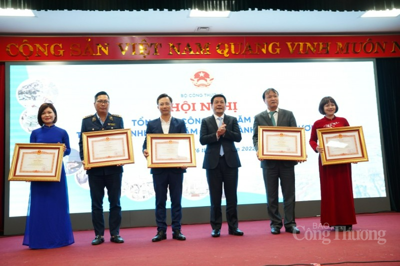 Tại hội nghị, xét thành tích xuất sắc, tiêu biểu của các tập thể và cá nhân các đơn vị thuộc Bộ trong công tác, Chủ tịch nước và Thủ tướng Chính phủ đã ký các Quyết định tặng thưởng Huân chương Lao động và Bằng khen của Thủ tướng Chính phủ cho 05 tập thể và 09 cá nhân. Theo đó, Vụ Khoa học Công nghệ vinh dự nhận Huân chương Lao động hạng Nhất. Huân chương Lao động hạng nhì được trao cho các đơn vị và cá nhân: - Cục Phòng vệ thương mại; - Cục Cạnh tranh và Bảo vệ người tiêu dùng; - Ông Đặng Hoàng An, Thứ trưởng Bộ Công Thương; - Ông Nguyễn Văn Thanh, Cục trưởng Cục Hóa chất. Huân chương Lao động hạng ba được trao cho các tập thể và cá nhân: - Cục Công nghiệp. - Ông Trần Việt Hòa, nguyên Vụ trưởng Vụ Khoa học và Công nghệ, nay là Cục trưởng Cục Điều tiết Điện lực; - Ông Trương Thanh Hoài, Cục trưởng Cục Công nghiệp; - Ông Phạm Hưng, Giám đốc Trung tâm thông tin Công nghiệp và Thương mại Tặng Bằng khen của Thủ tướng Chính phủ cho: - Vụ Thị trường trong nước; - Ông Đỗ Thắng Hải, Thứ trưởng Bộ Công Thương; - Bà Nguyễn Thúy Hiền, Phó Vụ trưởng Vụ Kế hoạch; - Bà Lê Việt Nga, Phó Vụ trưởng Vụ Thị trường trong nước; - Ông Nguyễn Thành Nam, Phó Tổng cục trưởng, Tổng cục Quản lý thị trường, Đã có thành tích trong công tác, góp phần vào sự nghiệp xây dựng Chủ nghĩa xã hội và bảo vệ Tổ quốc. |