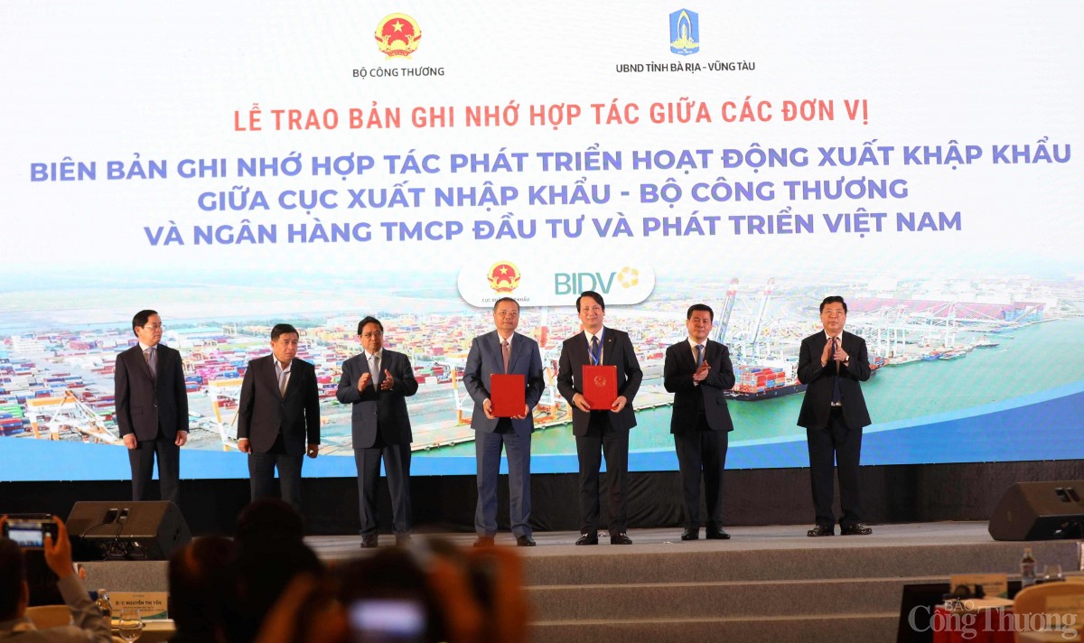 | Thủ tướng Chính phủ Phạm Minh Chính, Bộ trưởng Bộ Công Thương Nguyễn Hồng Diên cùng các đại biểu chứng kiến Lễ trao Biên bản ghi nhớ hợp tác phát triển hoạt động xuất nhập khẩu giữa Cục Xuất nhập khẩu - Bộ Công Thương và Ngân hàng TMCP Đầu tư và Phát triển Việt Nam. |